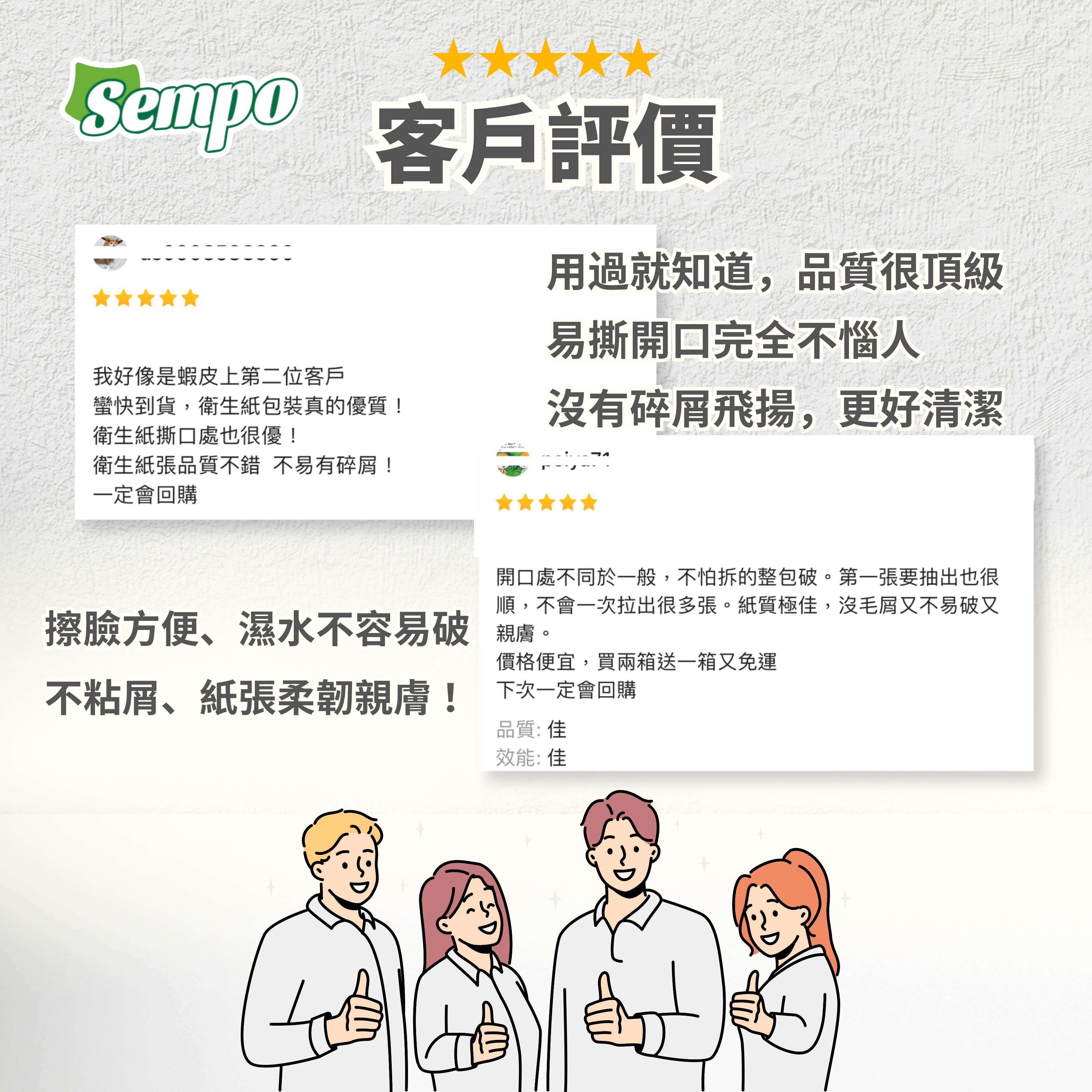 濕擦不掉屑、強韌不易破,不論乾濕都能輕鬆應對日常使用。
