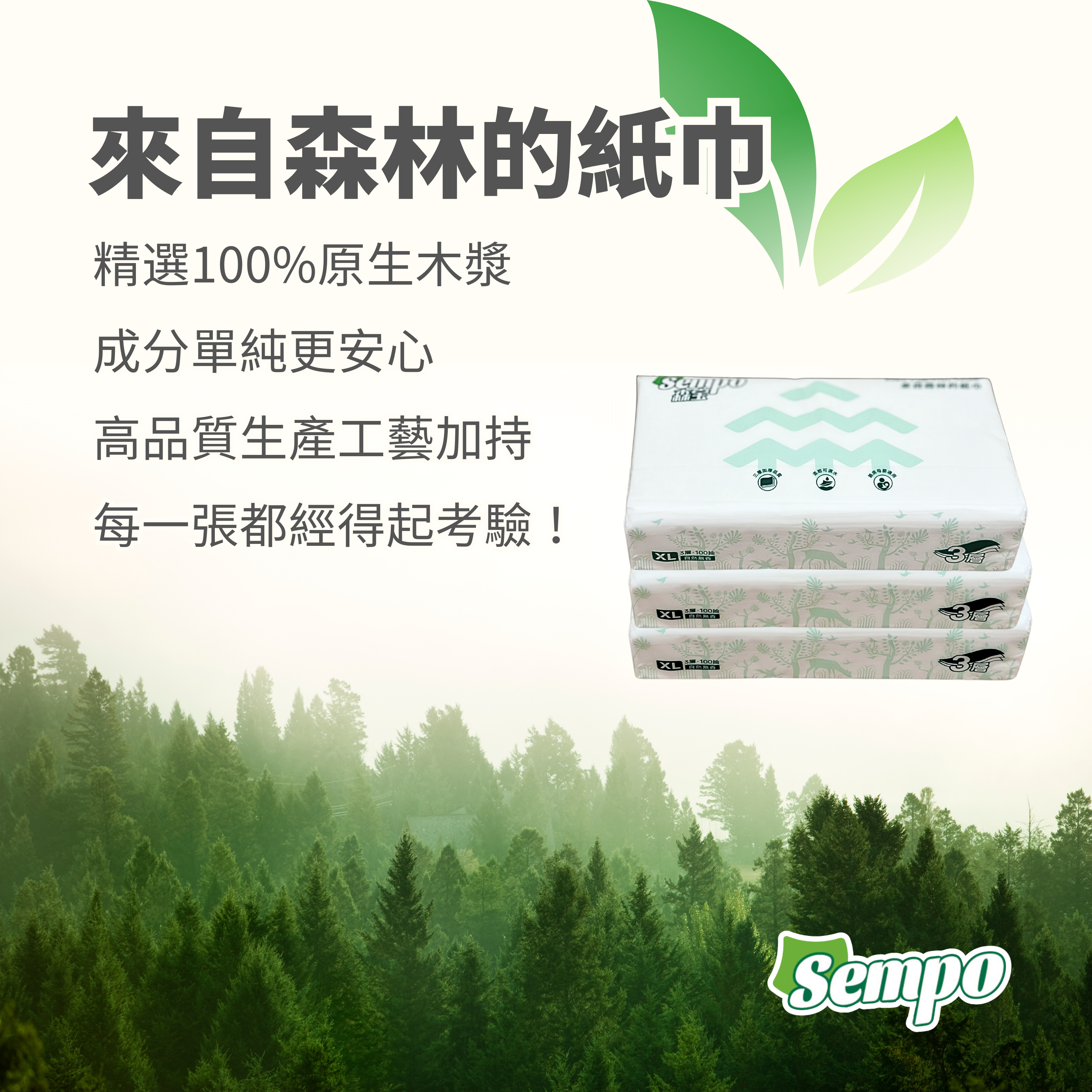 Sempo超大加厚三層100抽衛生紙